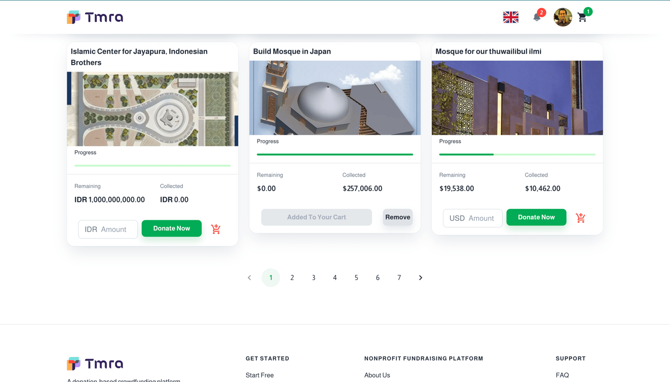 Step 3: Click the Cart icon on top right headers to see the details. You may edit the amount of donors.