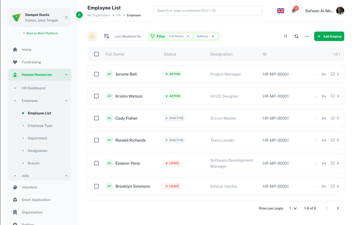 Step 1: Go to Human Resource > Employee > Employee List from your Dashboard