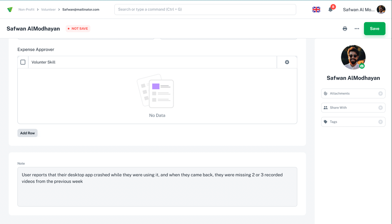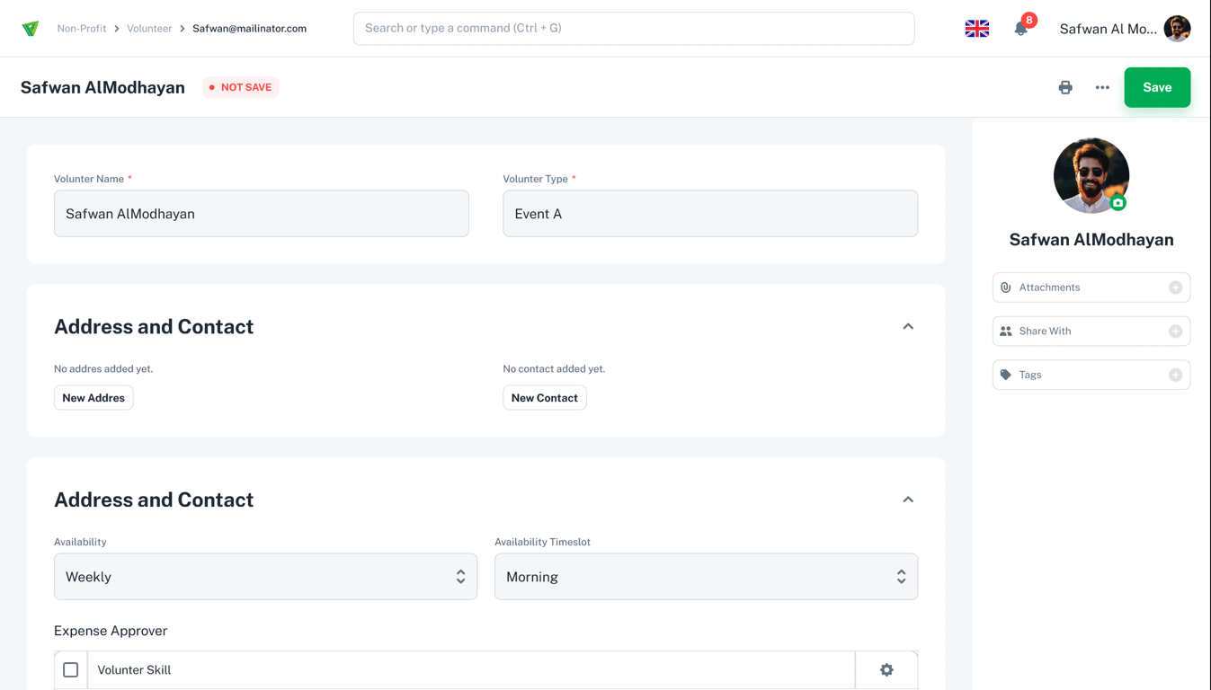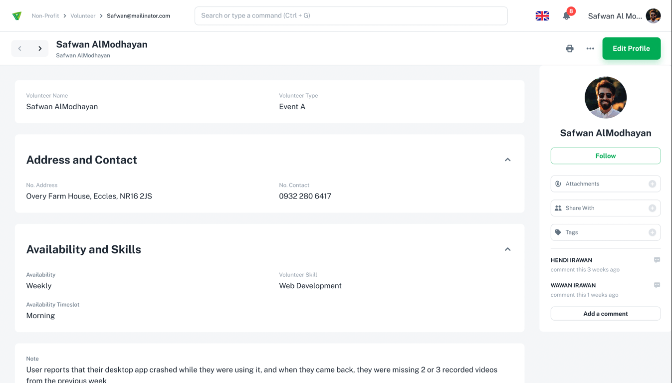 Step 5: Review the volunteers data and click Edit Profile on top right if you need to make some changes!