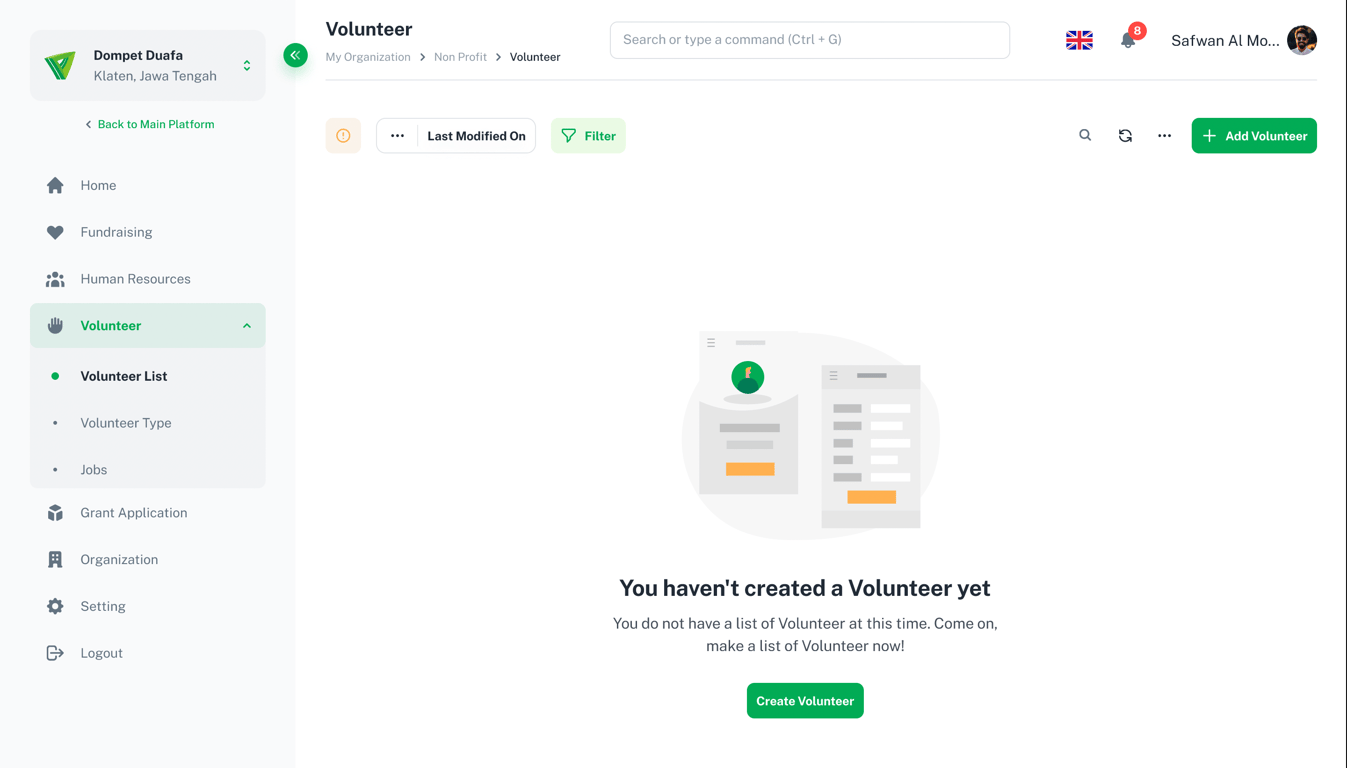 Step 1: Go to Volunteer > Volunteer List from your Dashboard