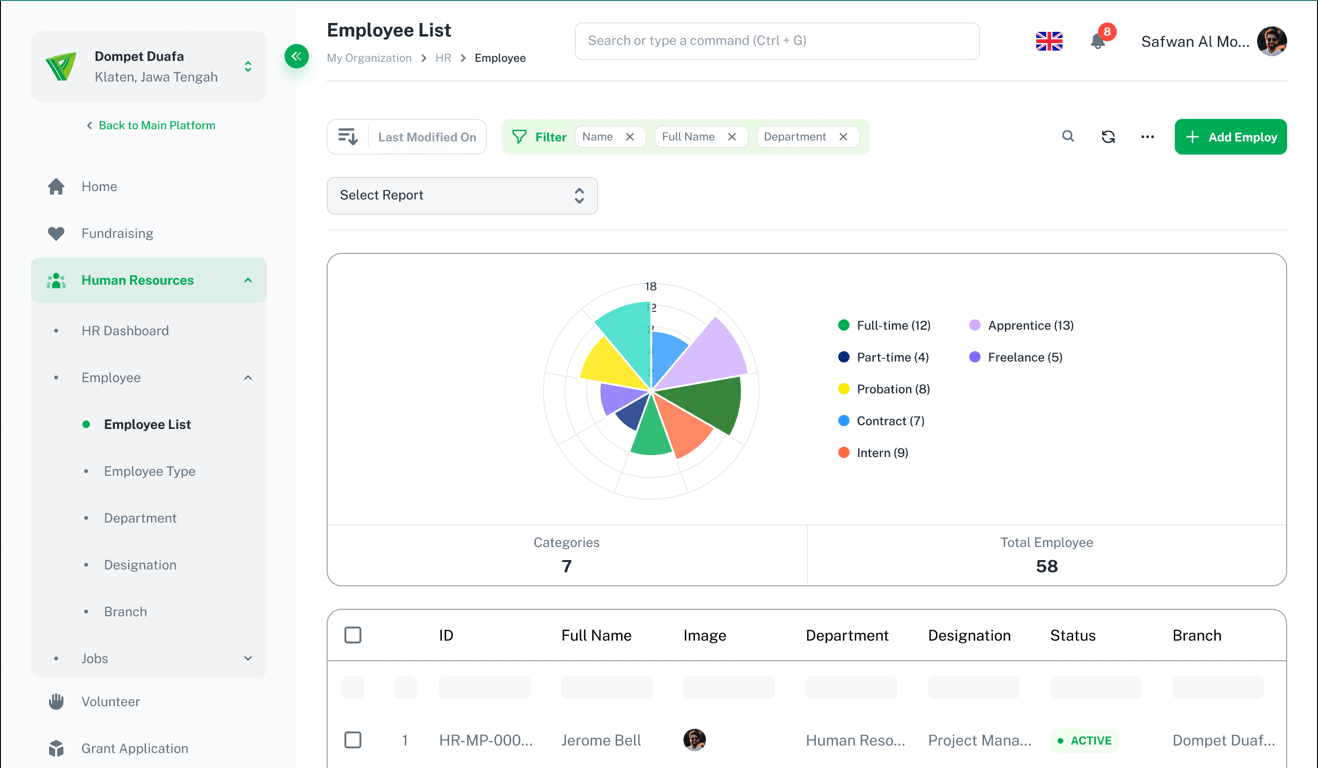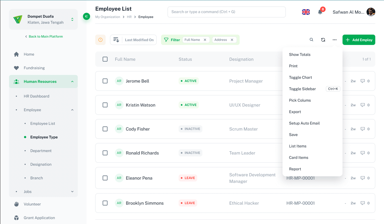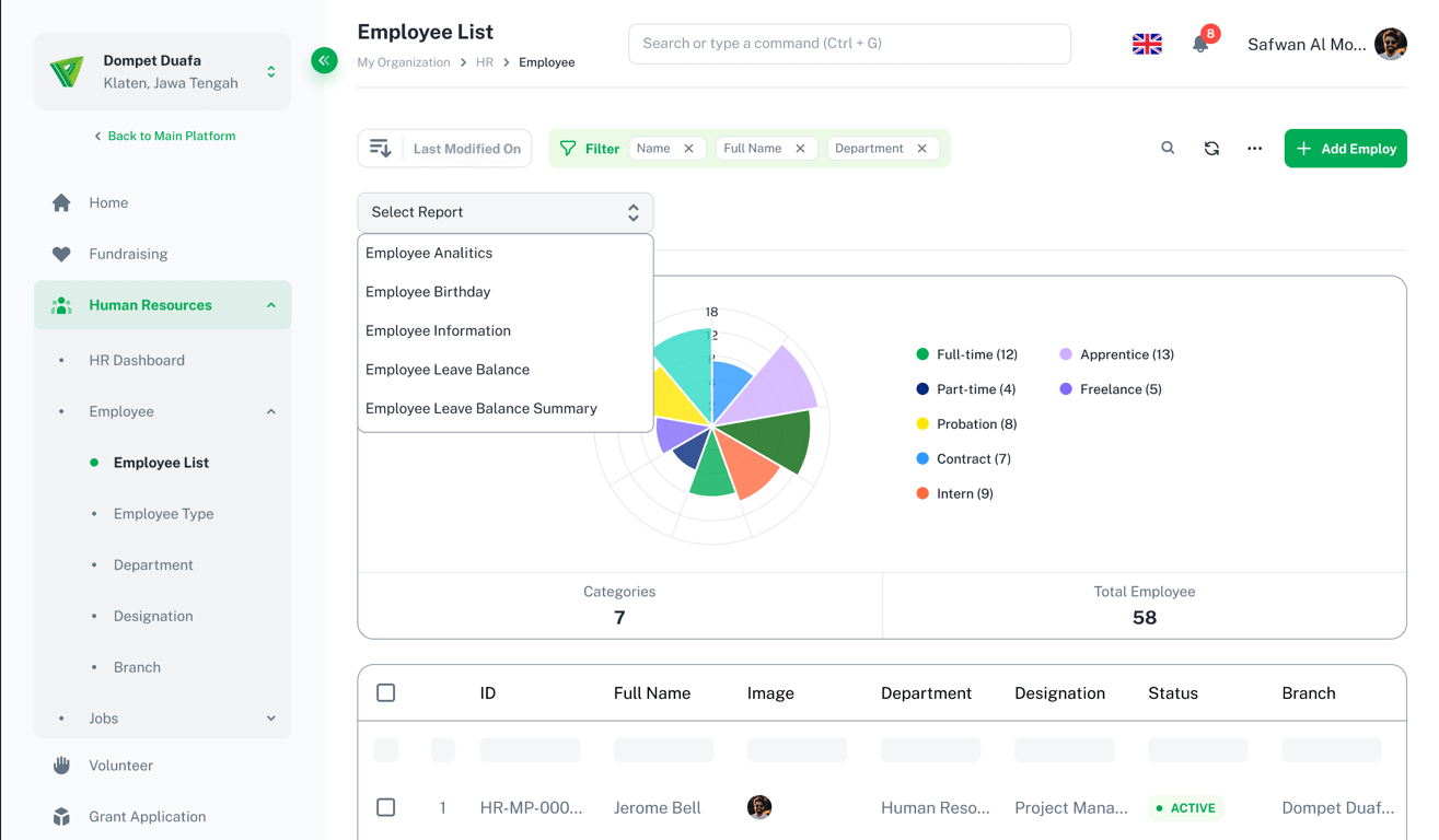 Step 4: Choose Employee report options that you want to access. It will shows you details of the employees based on the selected data.