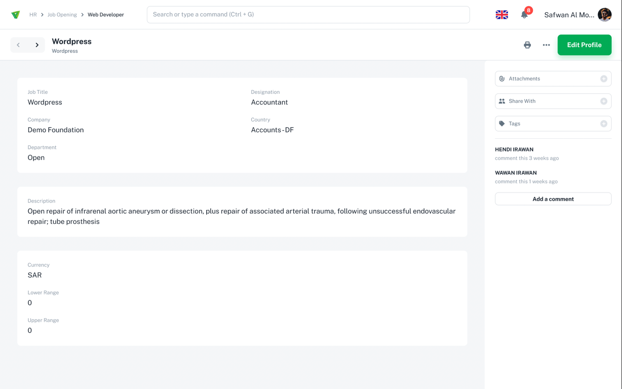 Step 5: Preview the new Job Opening. Click Edit Profile on top right if you want to make some changes. If not, just wait for Applicants apply to your organization.
