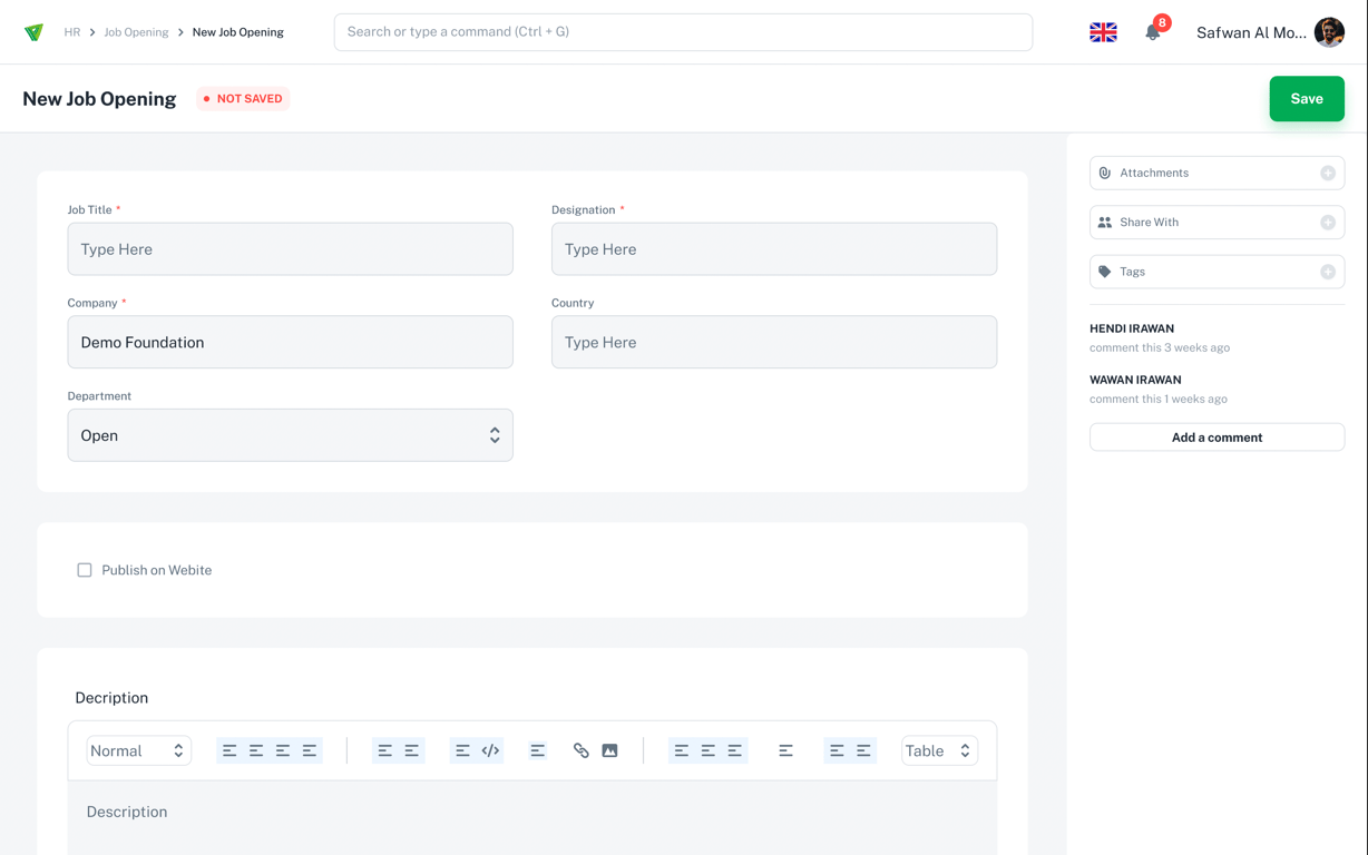 Step 4: Click Save to publish your new job opening