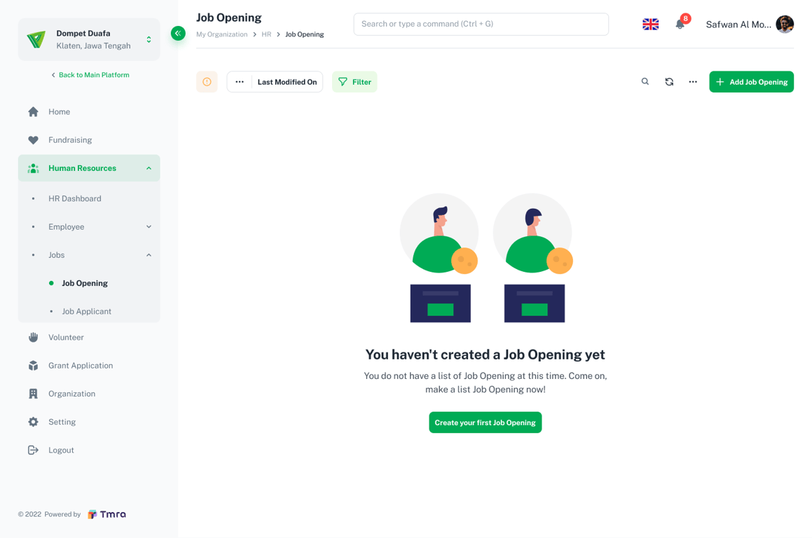 Step 1: Select Create your first Job Opening under Human Resources - Jobs