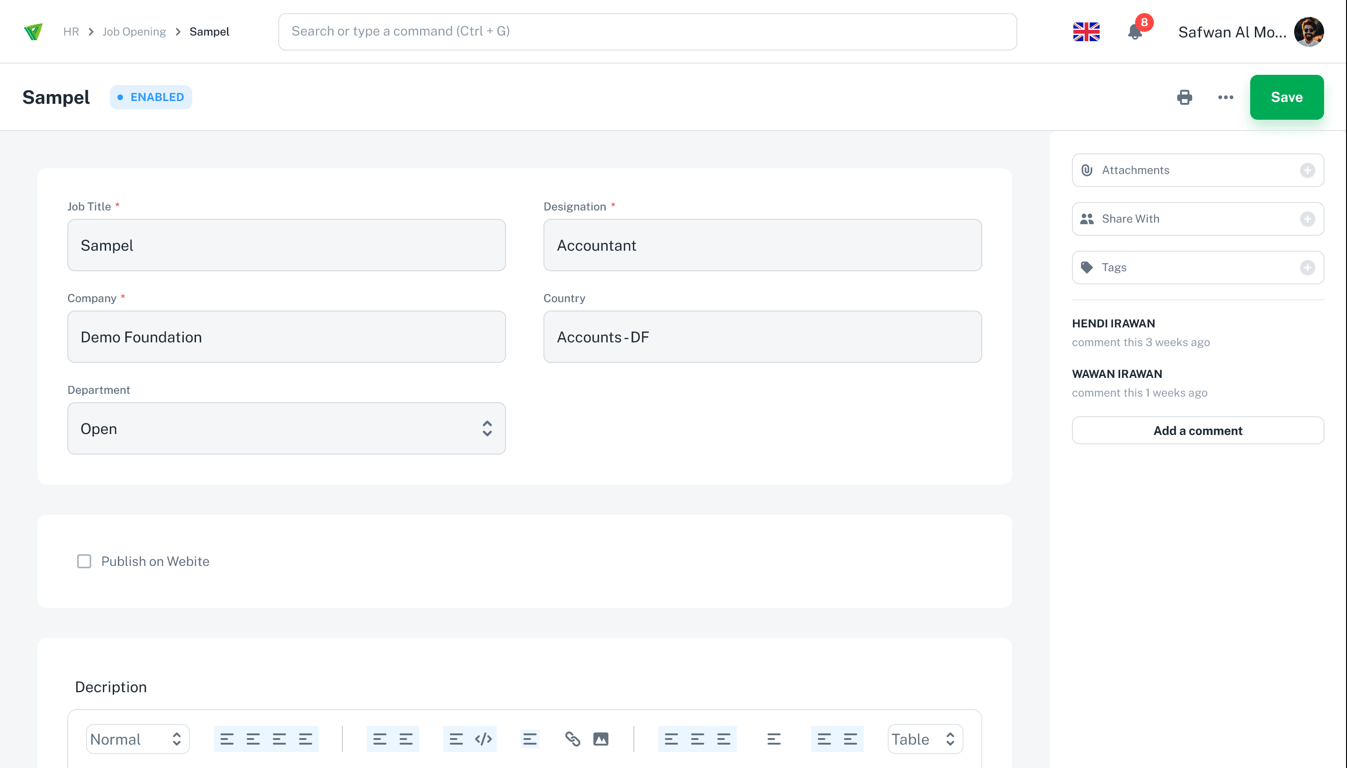 Step 6: Preview the New Job Opening for Volunteers. Click "Save" if you have completed