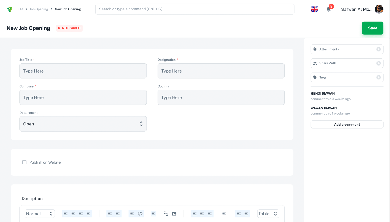 Step 2: Select Create your first Job Opening or Add Jop Opening from top right