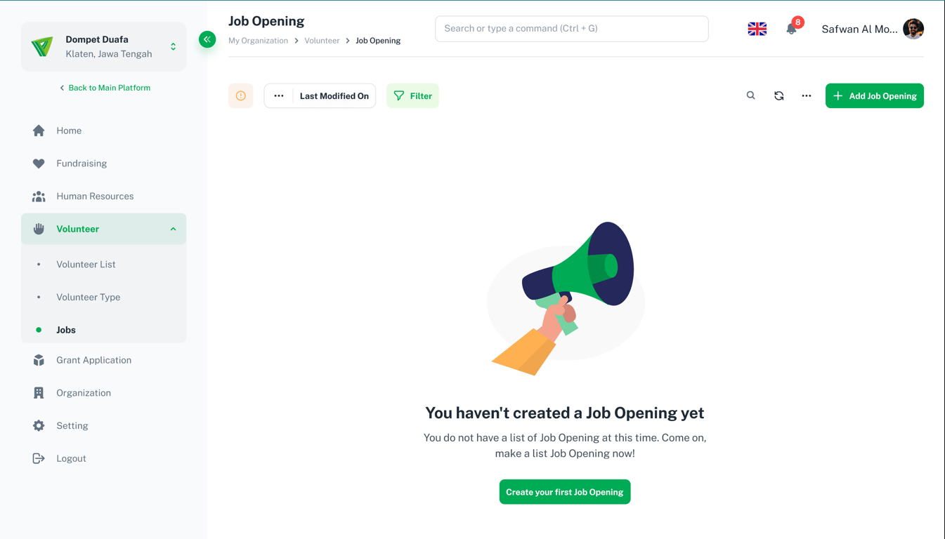 Step 1: Go to Volunteer > Job from your Dashboard