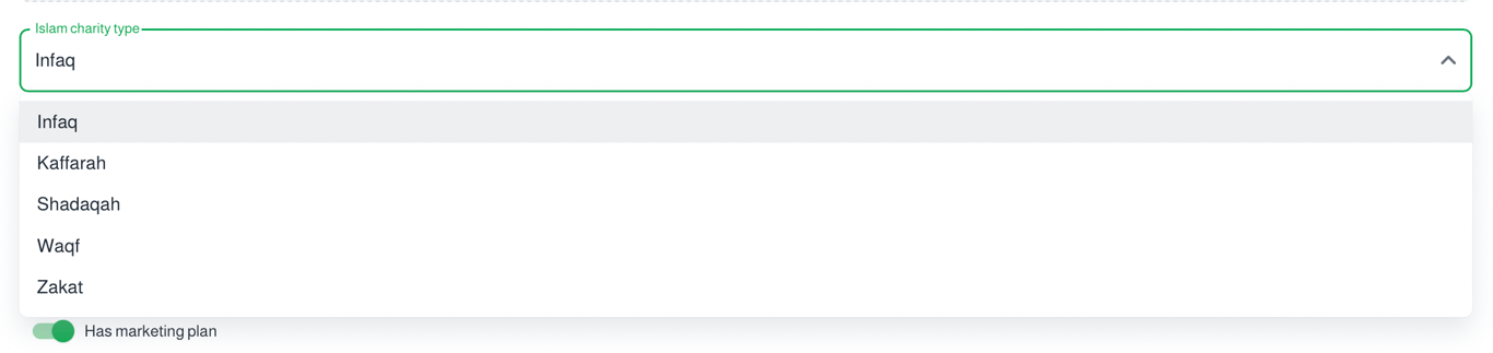 Step 3: Choose which type of Islam charity that your campaign refers to