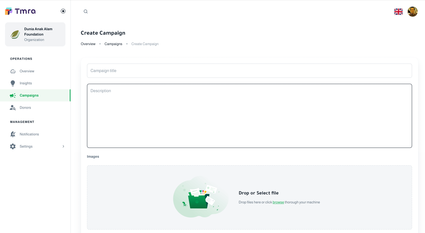 Step 2: Fill out the Campaign name, Description and Upload supported image that represents your campaign