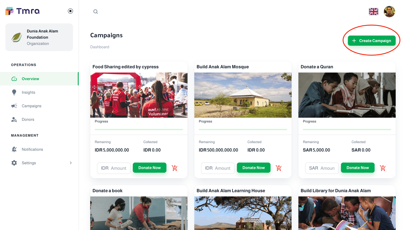 Step 1: To create a new campaign, click Create Campaign on the right side of your Dashboard page