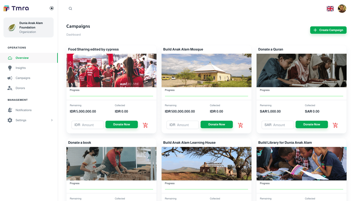 Step 1: You can access your active campaign through Overview and Campaign in dashboard. Click your campaign cover picture to start editing.